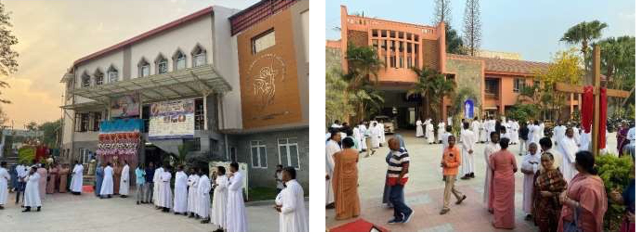 Natürlich war ein Großteil der indischen Mitbrüder angereist und auch viele Gäste fanden sich zu diesem historischen Tag ein (u.a. auch unser Provinzial P. Michael Huber). Und das Feiern kam nicht zu knapp. Gefreut haben sich die Mitbrüder sicher über alle vier Anlässe, aber ich vermute, dass sie die Erhebung zur Provinz vielleicht am meisten berührte. Das war ein langer und schwieriger Weg über viele Jahre hinweg. Jedenfalls waren die Freude über das Erreichte und die Hoffnung auf das, was daraus noch entstehen kann, in den Gesichtern der Mitbrüder deutlich abzulesen.